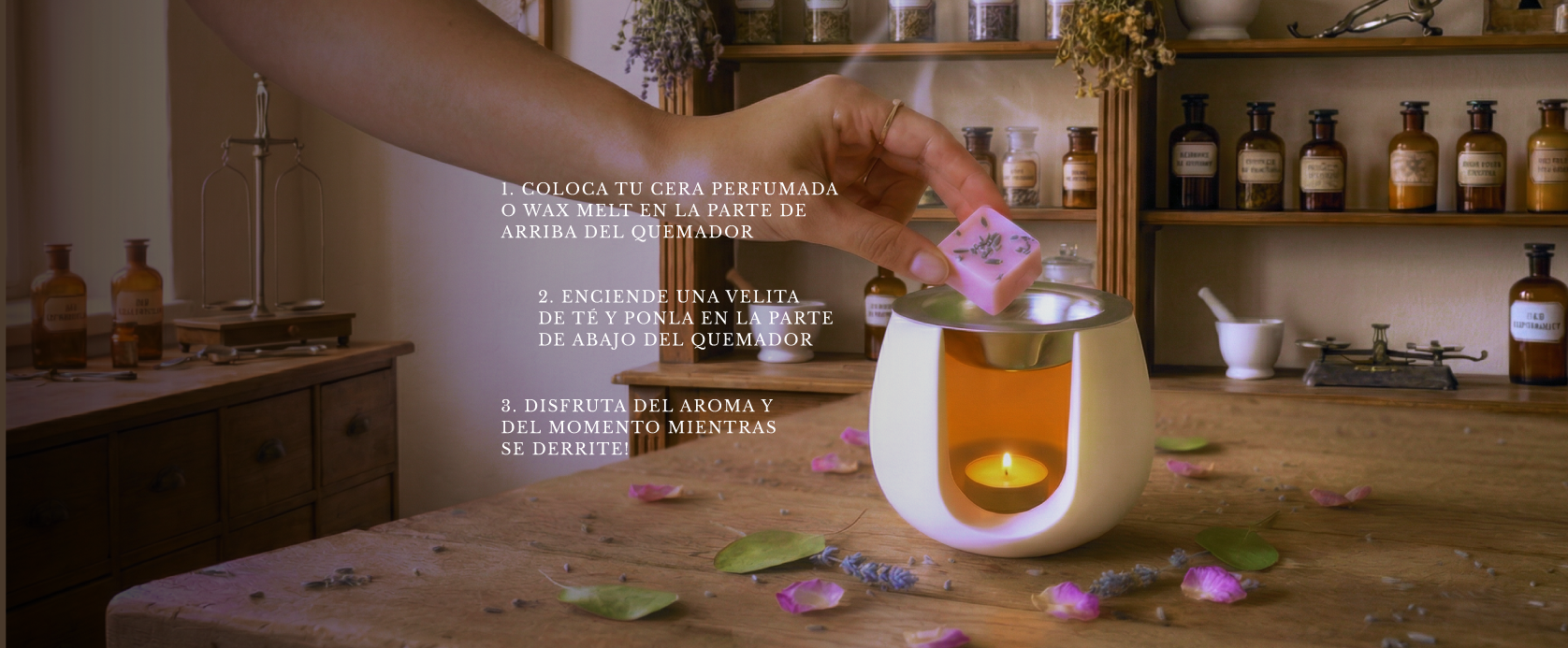 Son pequeñas piezas de cera aromatizada que, al derretirse en un quemador, liberan su fragancia lentamente y perfuman el ambiente.