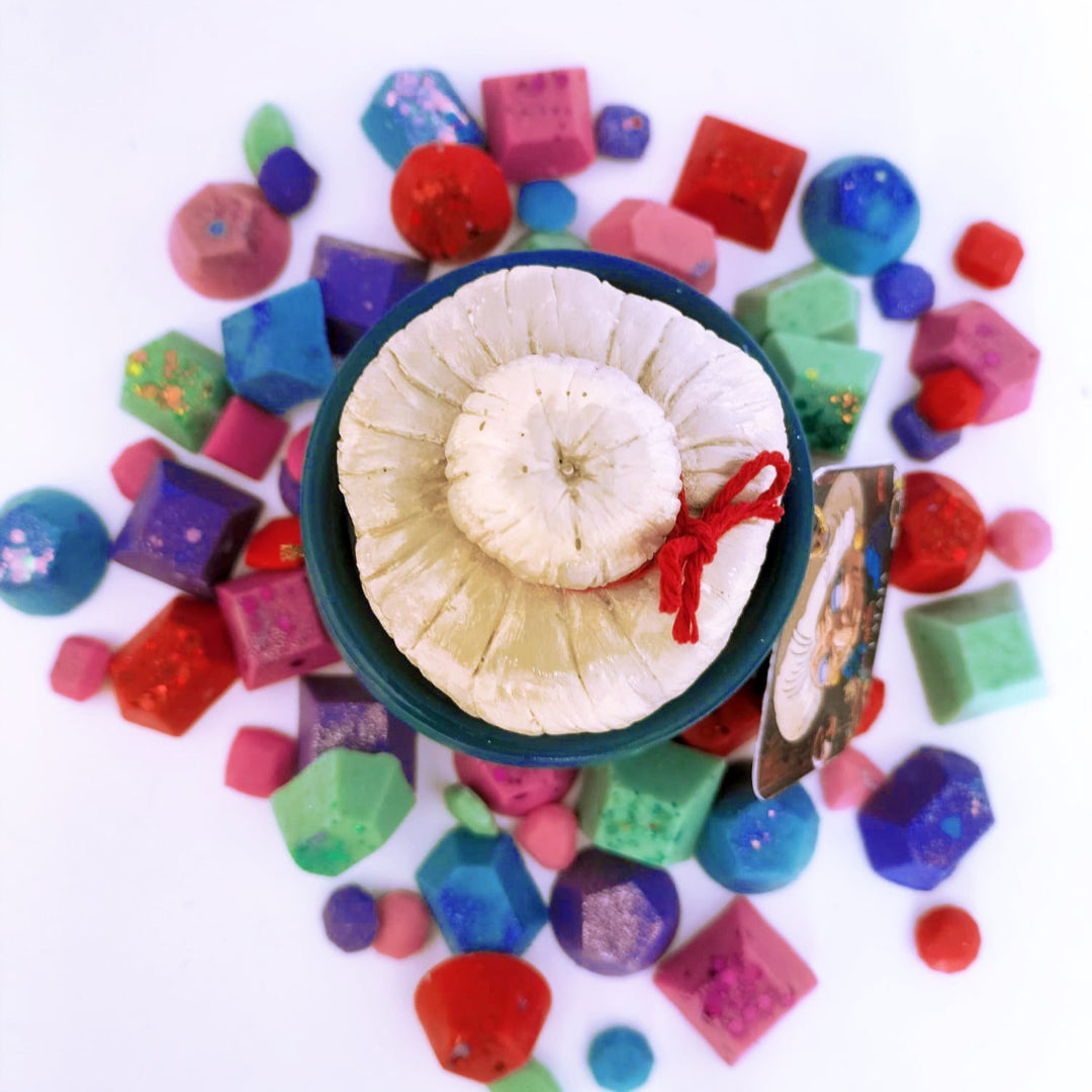 Unas ceras únicas, que parecen sacadas directamente del despacho de Yubaba. Este joyero de resina natural, hecho y pintado a mano, luce en su tapa el característico moño de la bruja, símbolo de su poder y de los contratos que atan a quienes entran en su mundo.