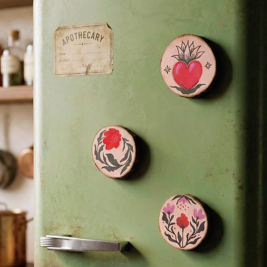 Imanes para nevera de madera "Fulgor de Hogar"