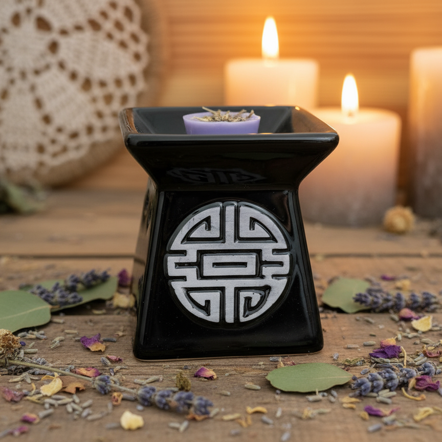 Un quemador pequeño, pensado para acompañar rituales de limpieza, meditación o simplemente para equilibrar la energía de tu espacio.